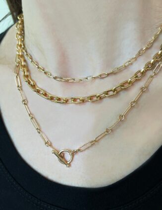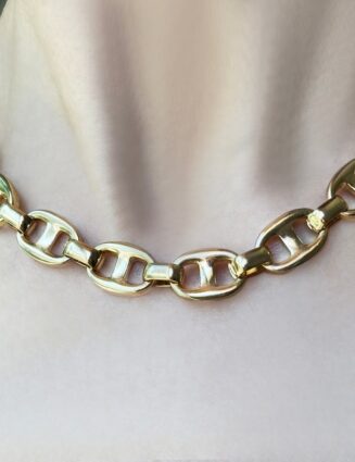 This perfectly weighted handmade chain is substantial in how it looks and feels. We love this link layered with beads and chains! We highly recommend this beauty if you are looking to add a timeless statement piece to your collection. Each link is constructed and detailed by hand. 50-80grams 14kt Solid Gold (weight depends on length…