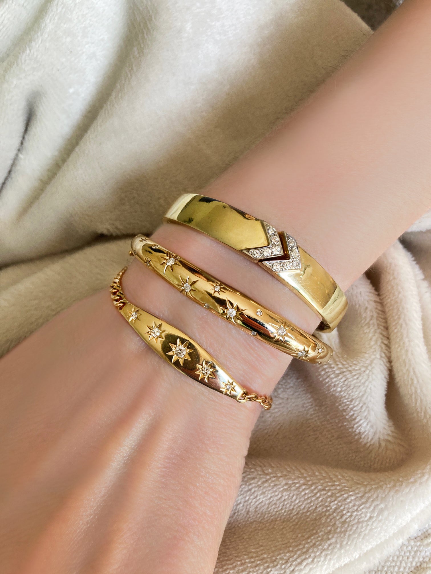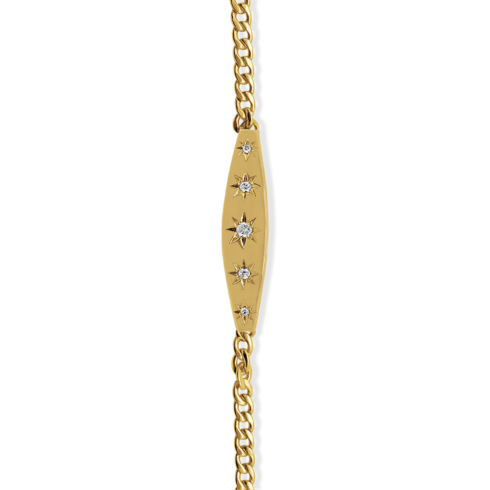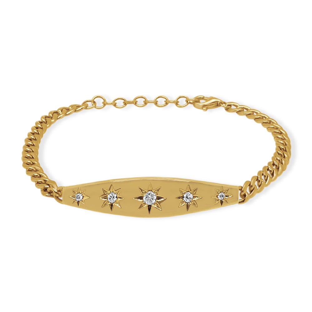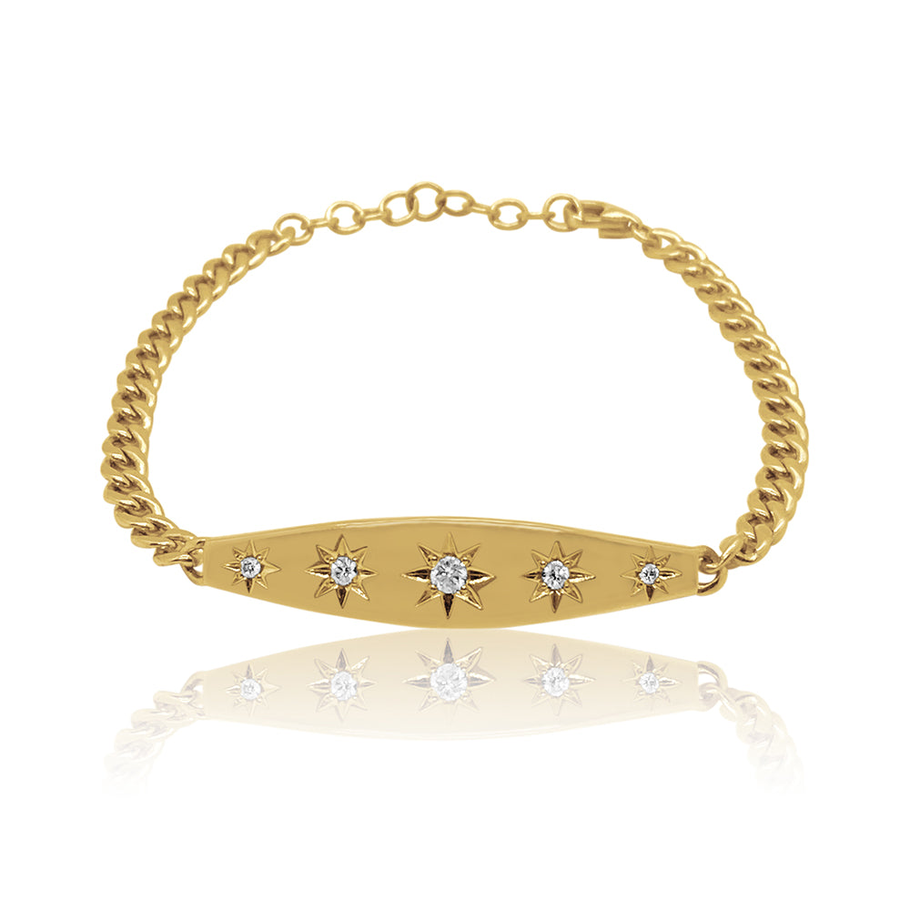 You know how much we love our Diamond Stars. so placing them on an ID Bracelet with a delicate cuban link was kind of a no brainer. Stacks well with other arm candy.