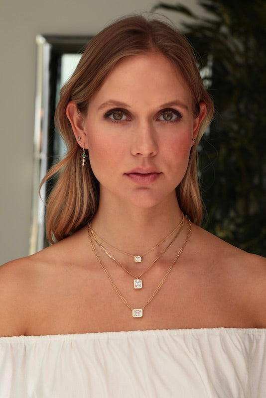 Pictured with emerald (in first image). Please inquire for pricing on Diamond. Ruby. Sapphire (also pictured in additional image) or any other custom stone.