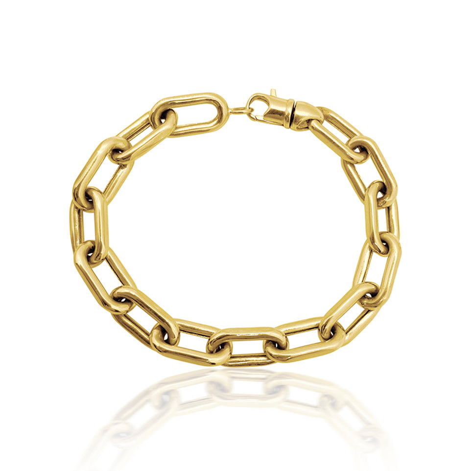 The Big Bad Boy Bracelet is the perfect foundation on which to build your wrist story – just add and/or takeaway other favorite bracelets as you please. This heavy-looking chain is actually lightweight and comfortable for everyday wear.