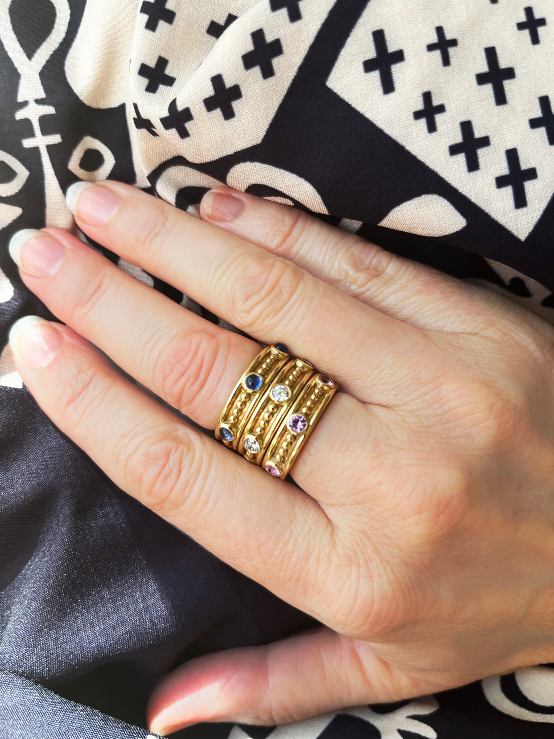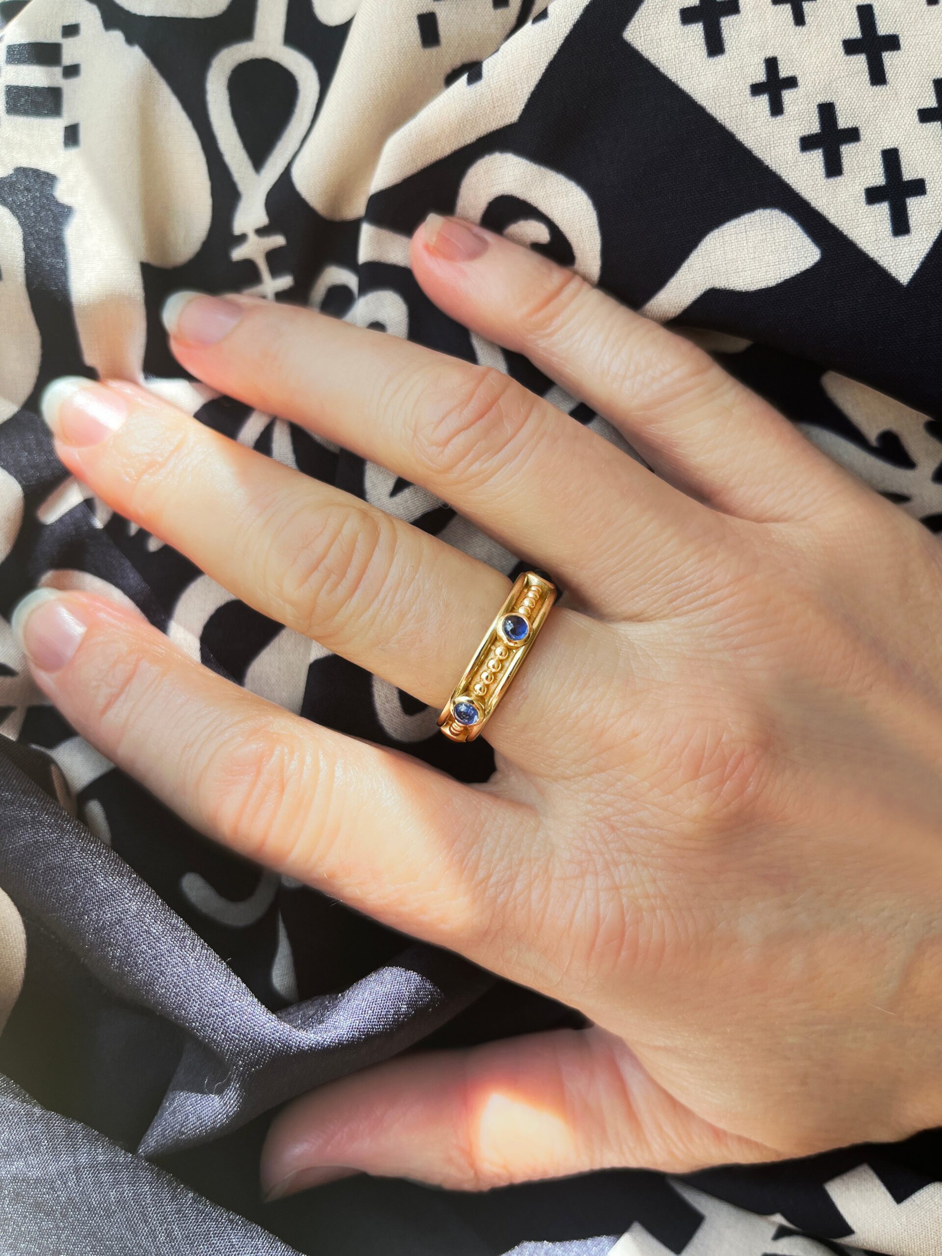 Classic Gold Bead & Cabochon Gemstone Band