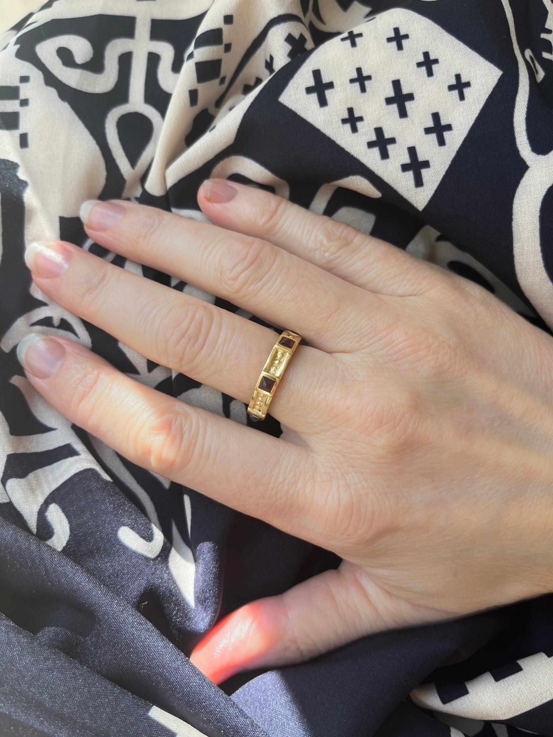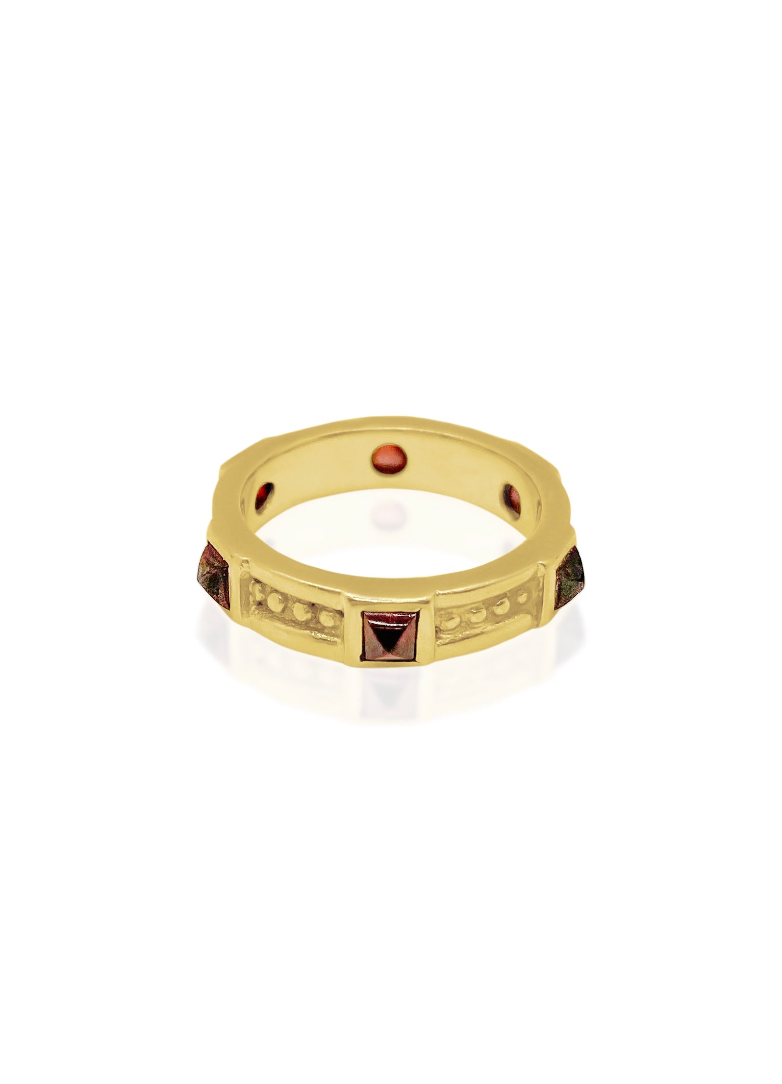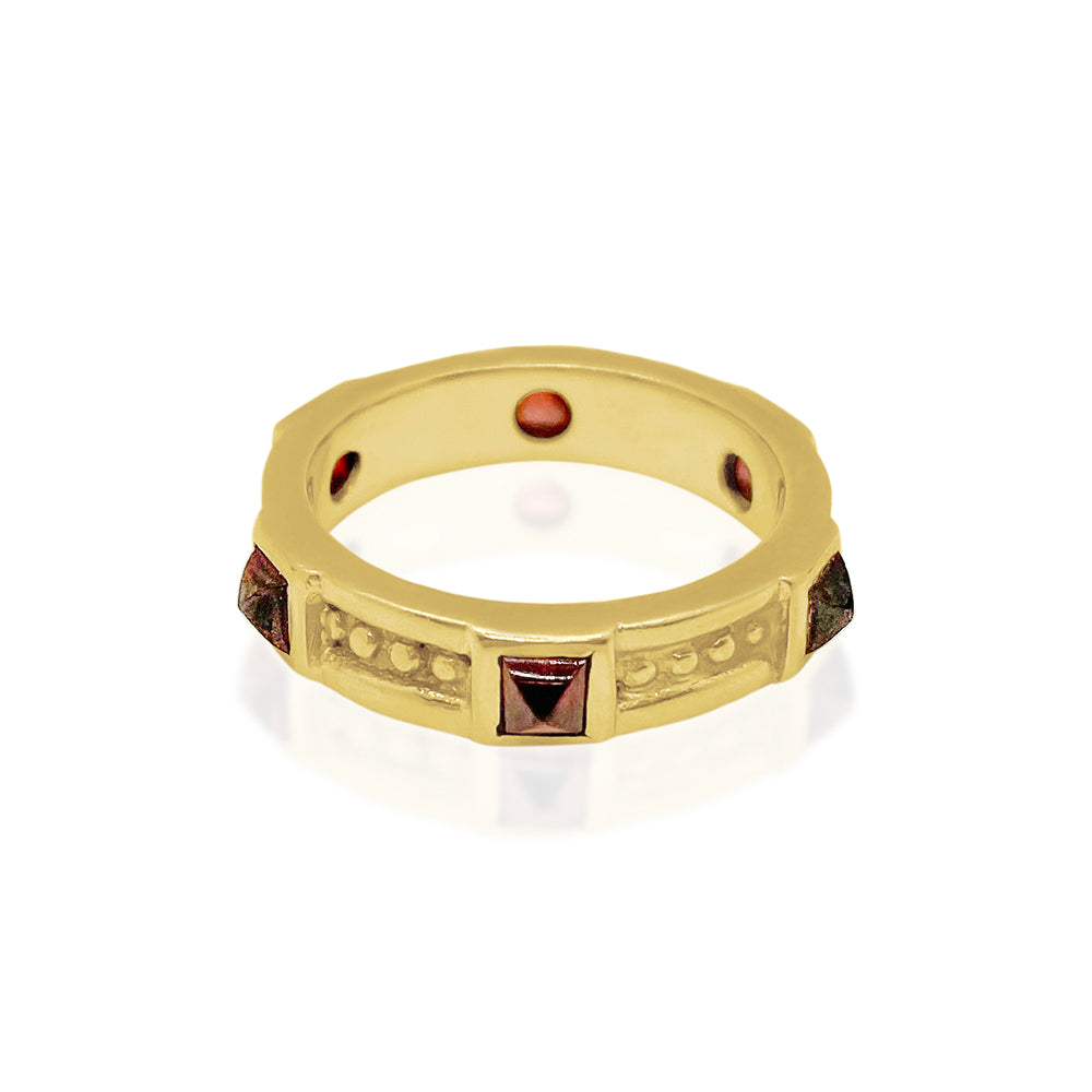 Classic Gold Bead & Pyramid Gemstone Band