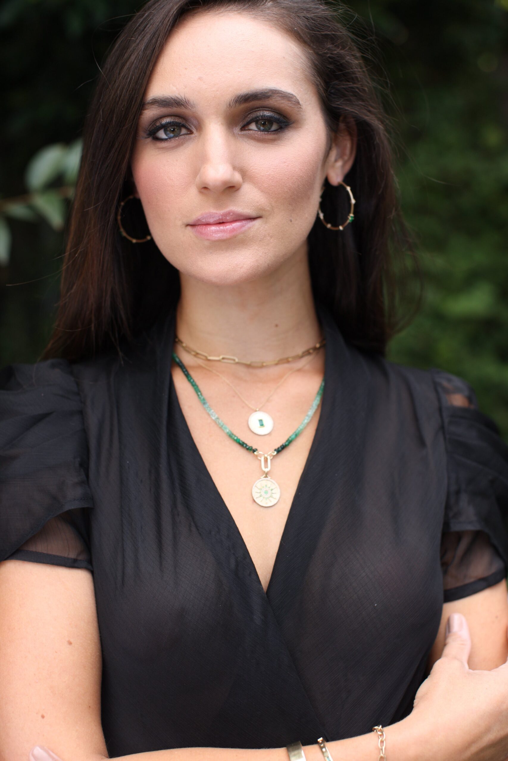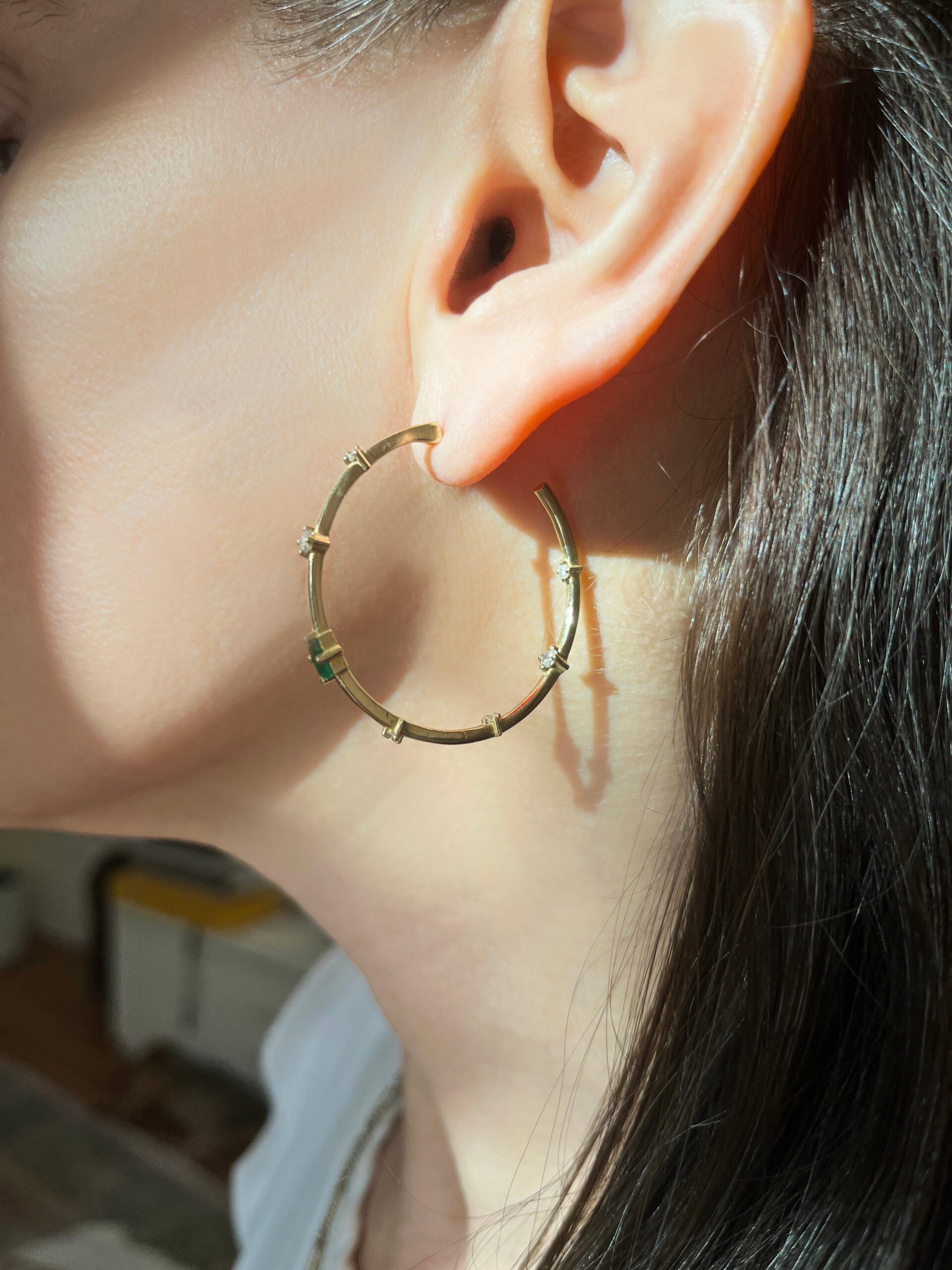 These beautiful Emerald & Diamond Hoops are oh-so-modern and will add the perfect pop of color to any look. They are lightweight enough to wear all day and then dance through the night. Post back.