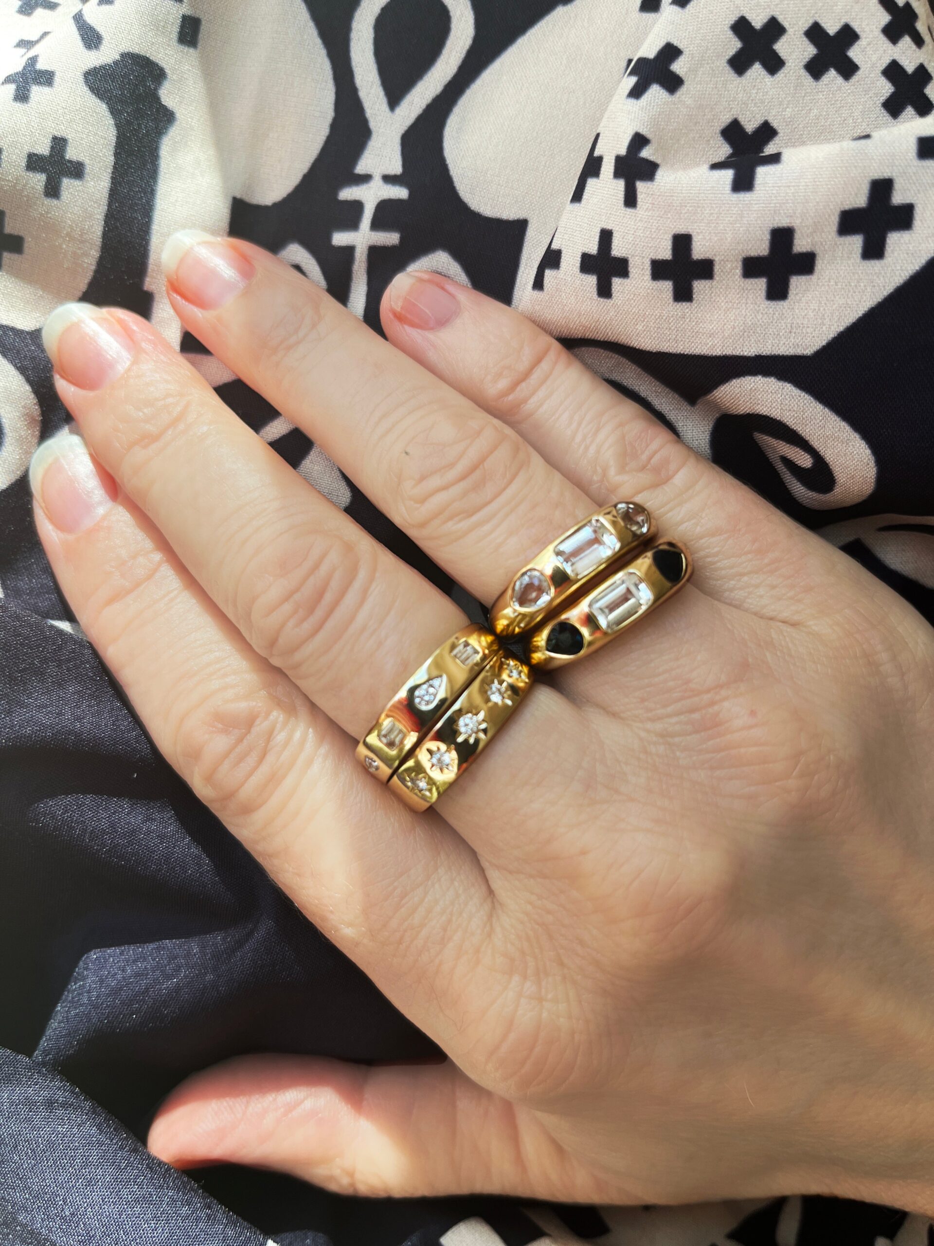 Classic setting. worn alone or stacked. these rings can be a token of love. birthstone or fave stones – please inquire for custom choices.