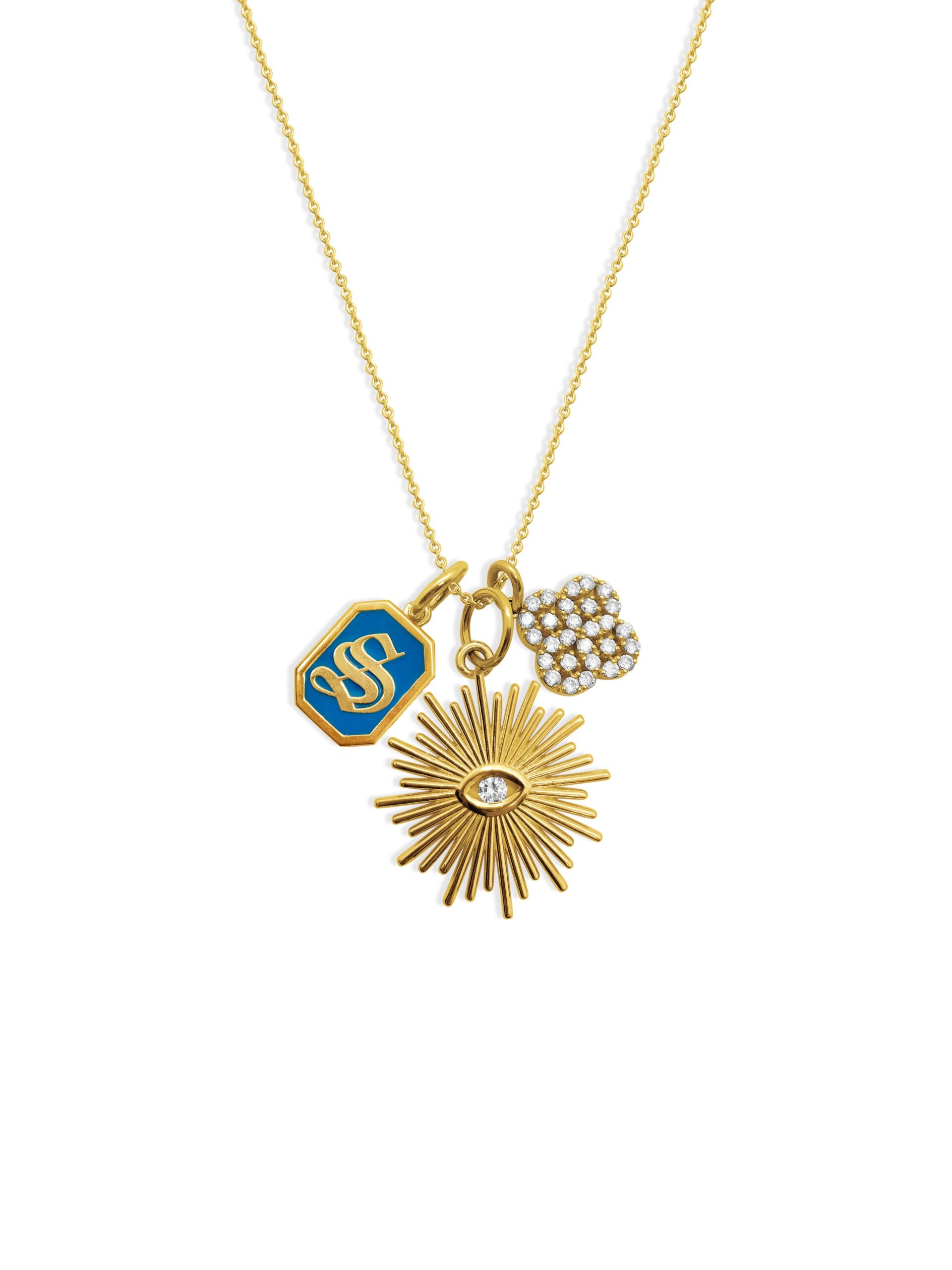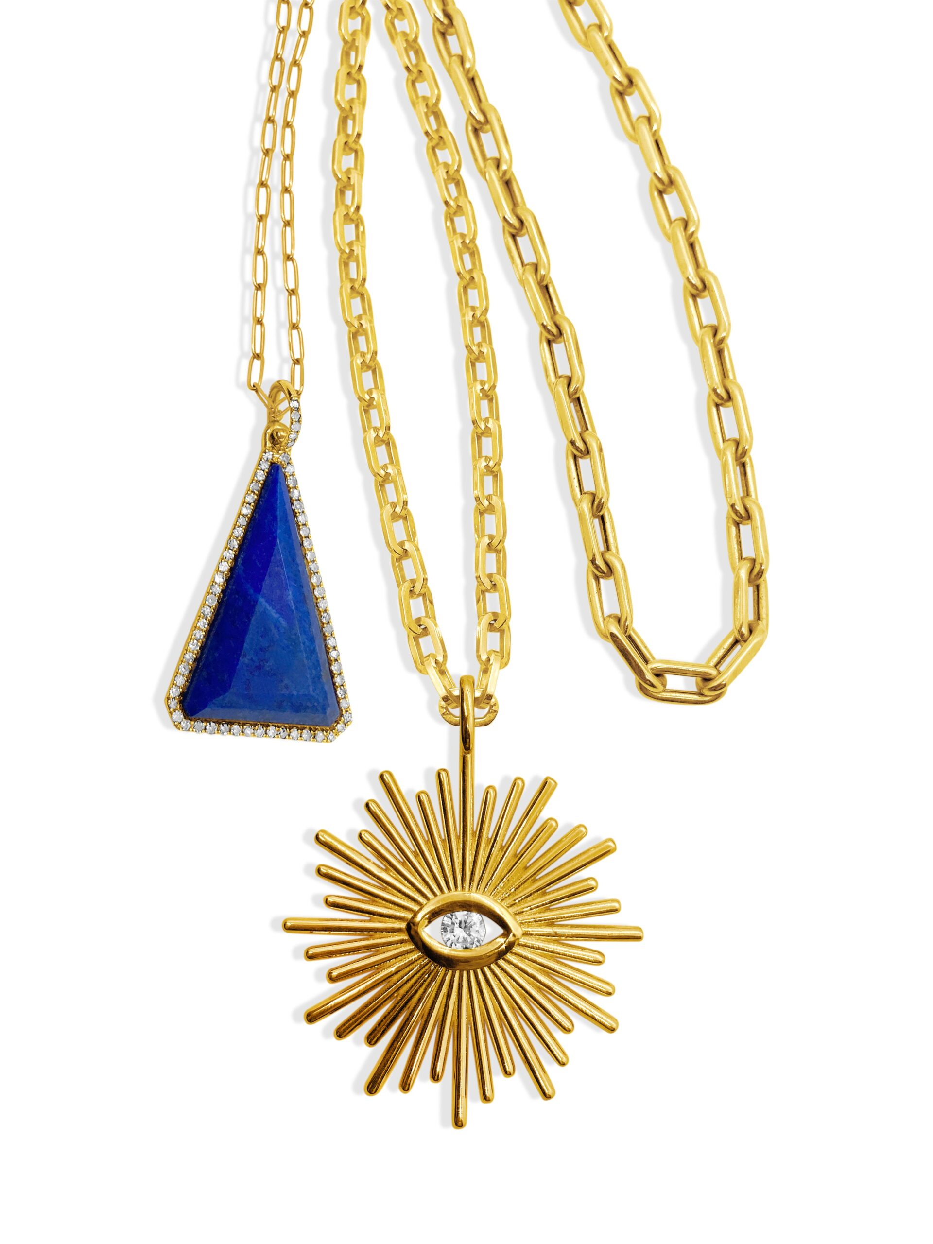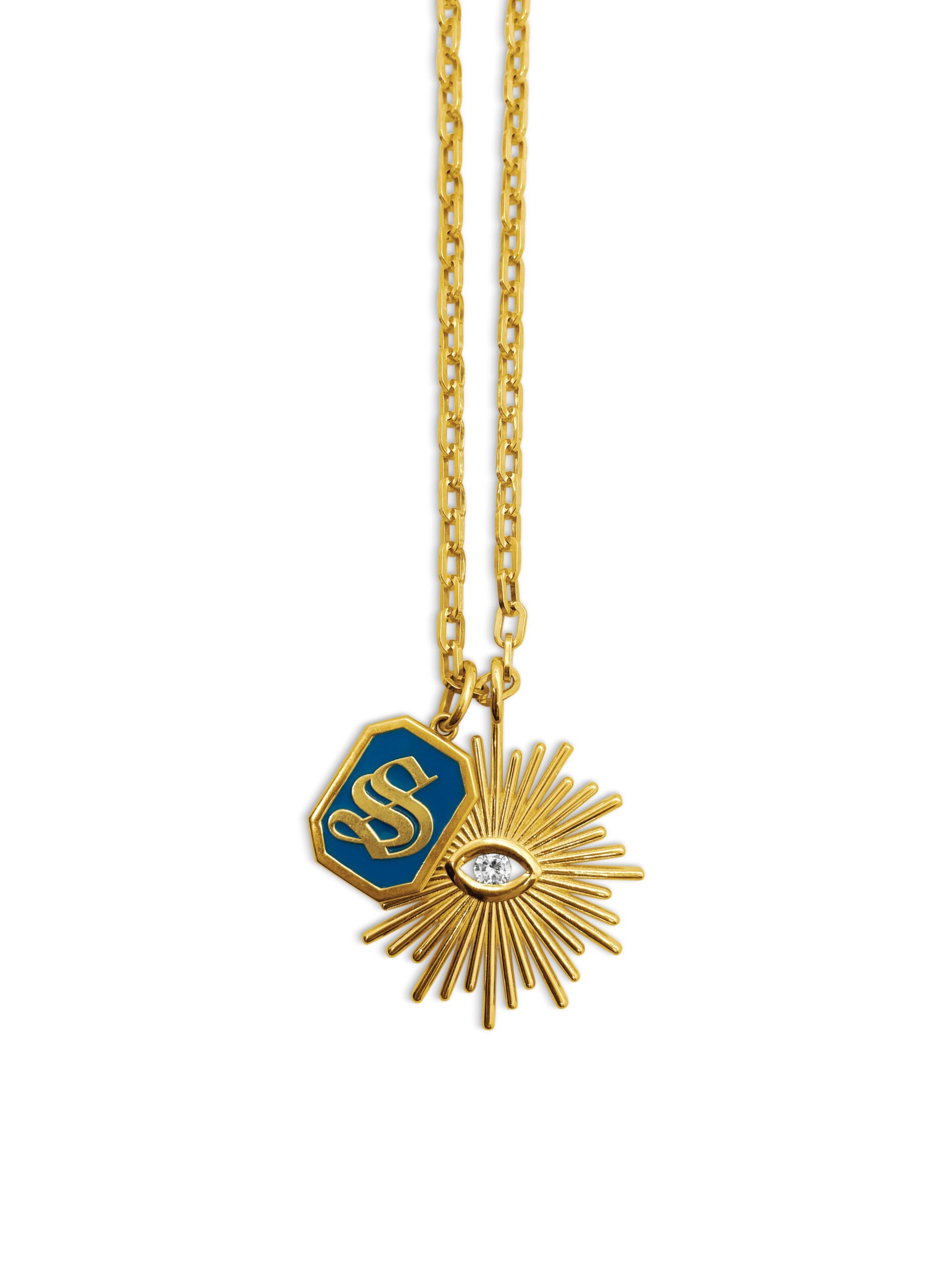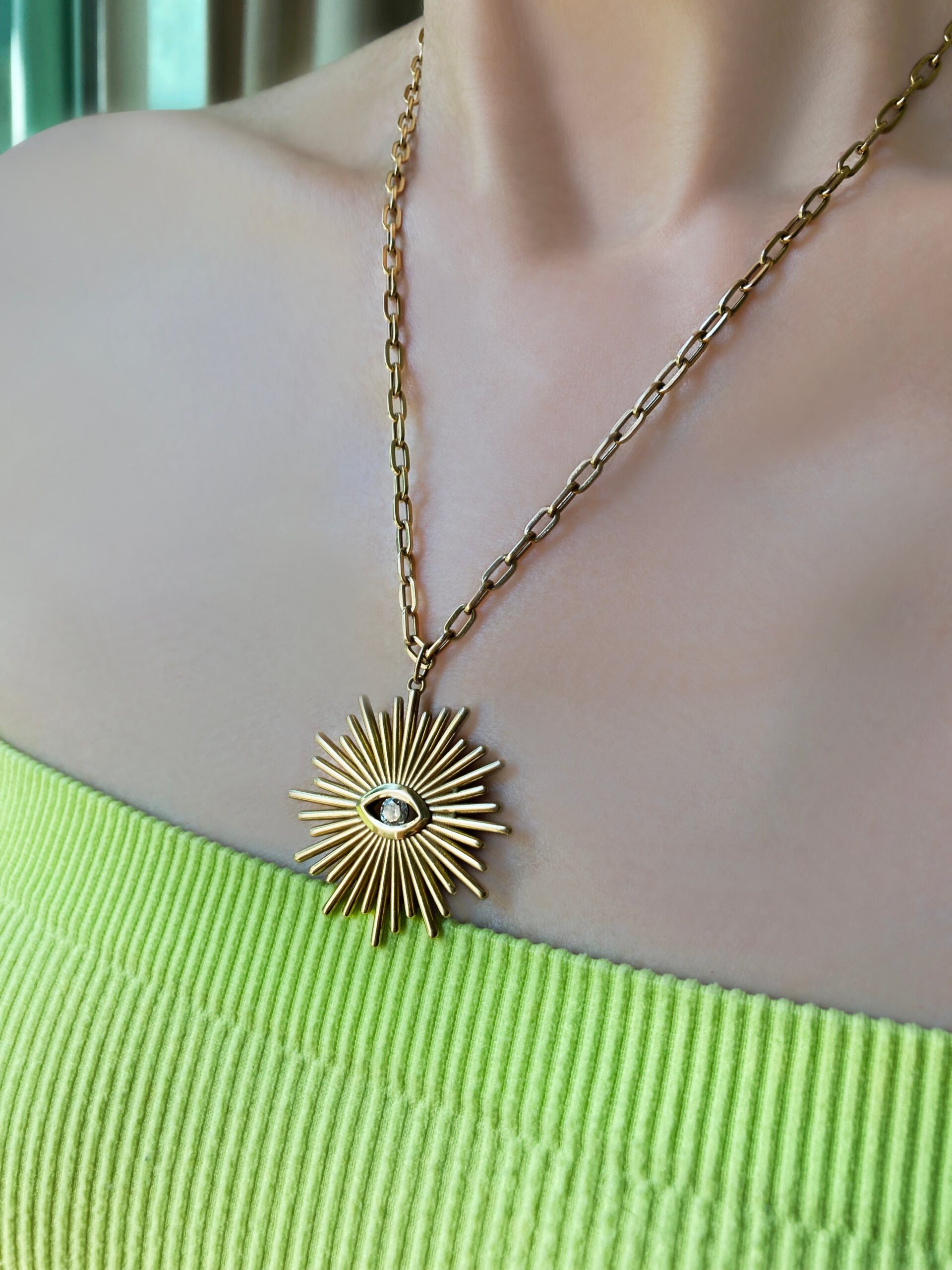 Classic Evil Eye. with a twist. We call this the "Protection Amulet". The larger scale and brilliant diamond center makes this a STAND ALONE. (For petite version see " Small Protection Amulet Necklace".)