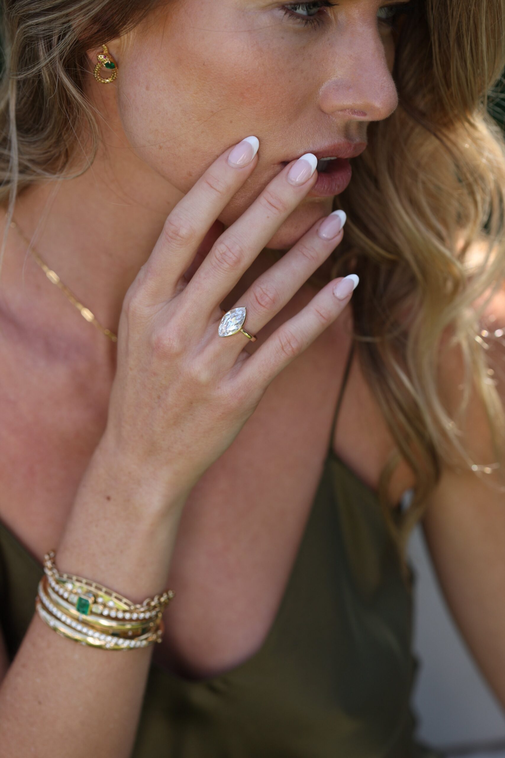 Ethereal. alive. and oh so pretty. the Goddess Marquis gives off such radiance. This Marquis-cut Simulated Diamond is bezel set. VVS grade and… drop dead lovely.