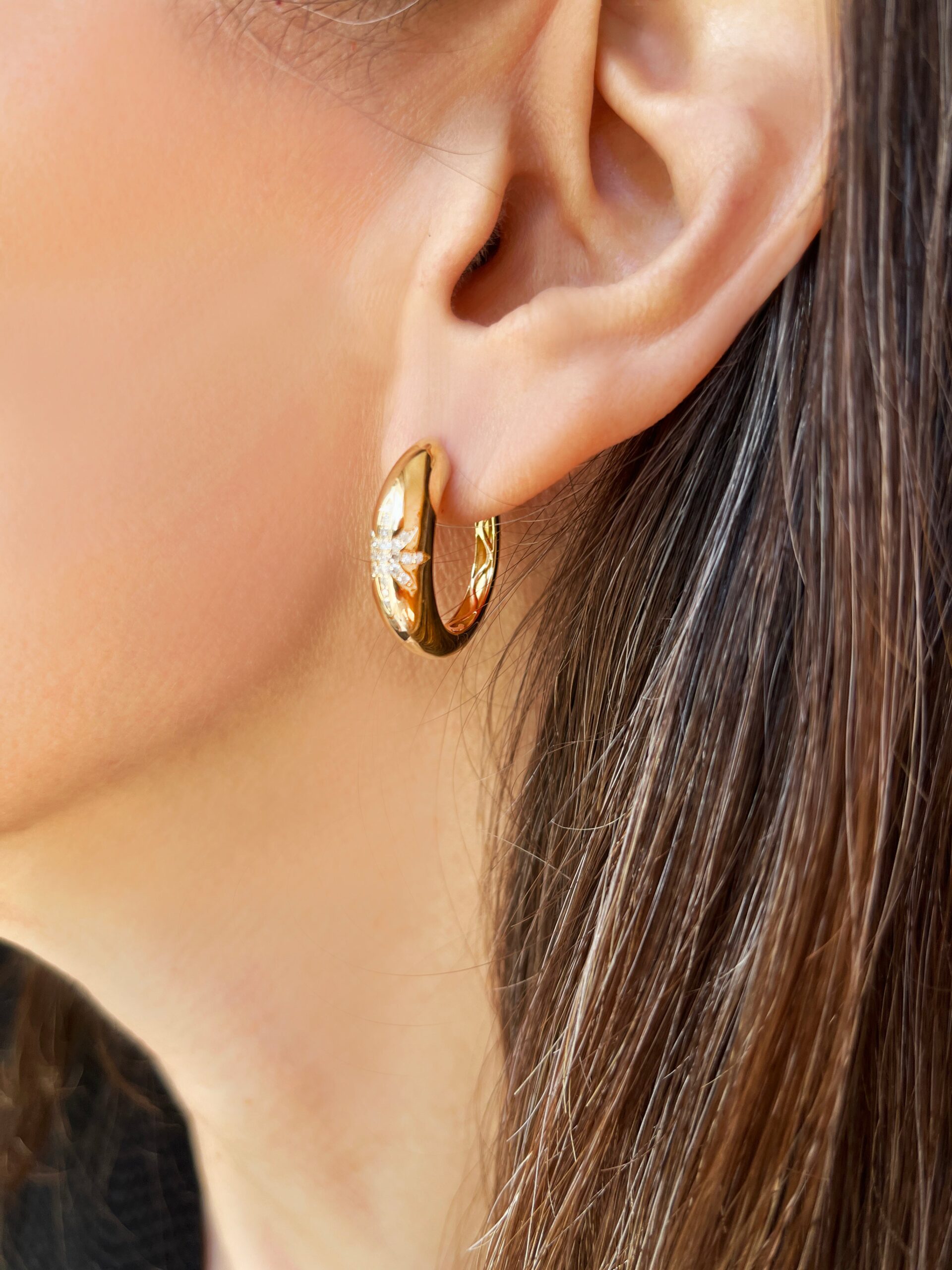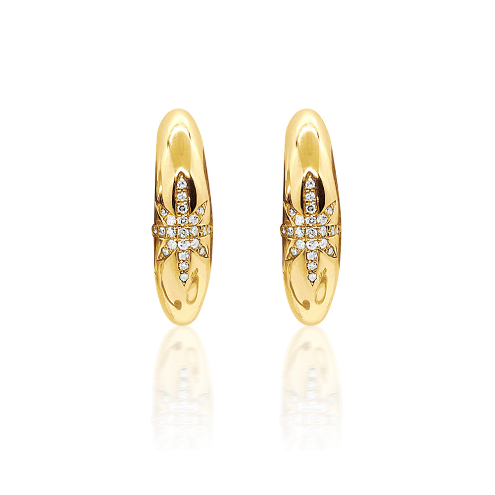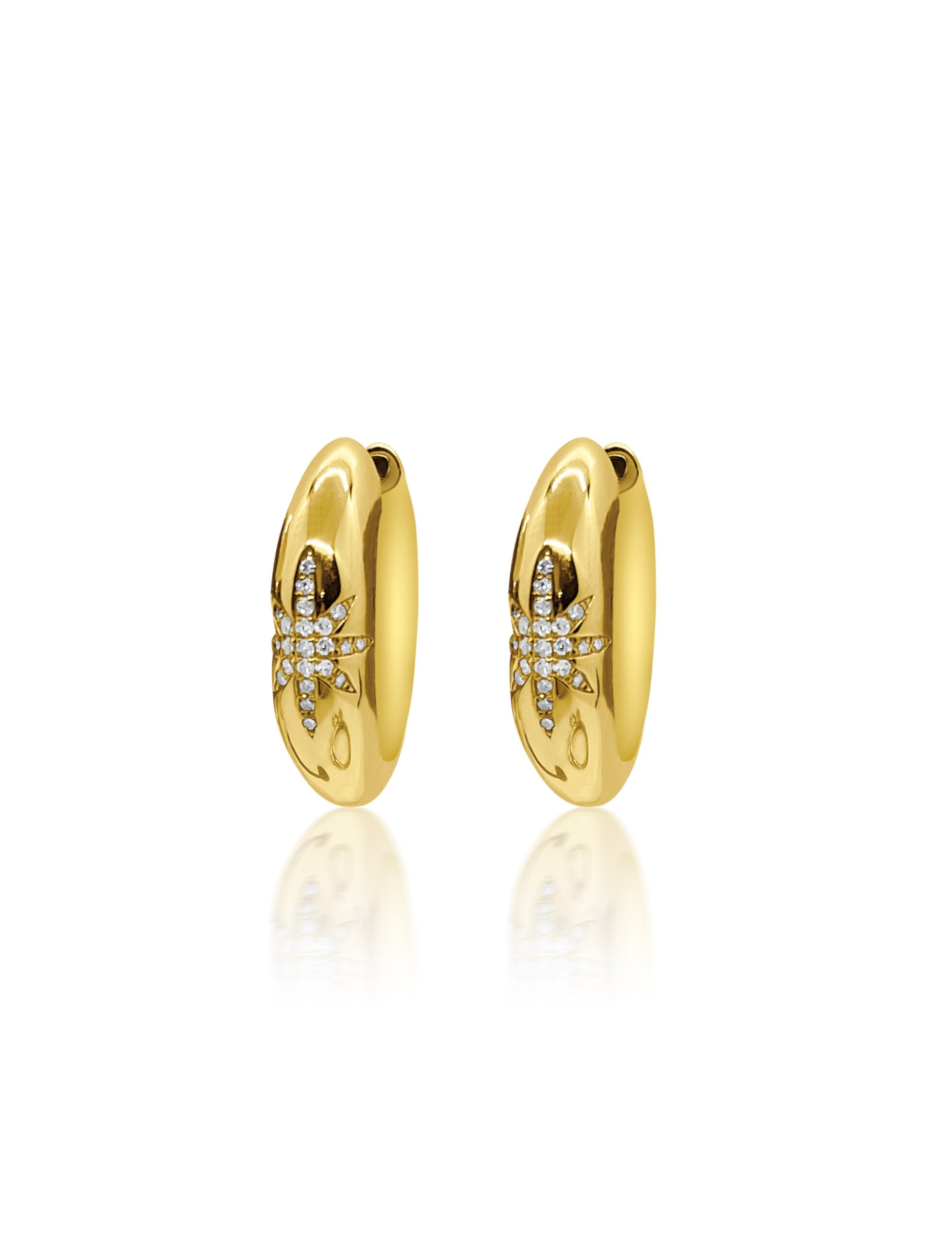 One and DONE! These gorgeous hoops are the perfect scale. day or night.. not to mention how the pave diamond detail elevates them to a more contemporary level. The North Star Gypsy Band is a perfect companion stacking ring!