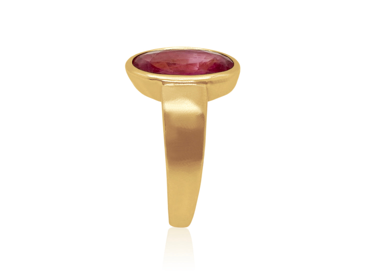 This Oval Bezel Set "pigeon's blood" Ruby makes THE perfect pinky ring. even if it does look at home on any finger. It possesses an earthy. organic feel and looks truly amazing paired with our Waterwheel Ring. We must admit. it's one of our favorites.