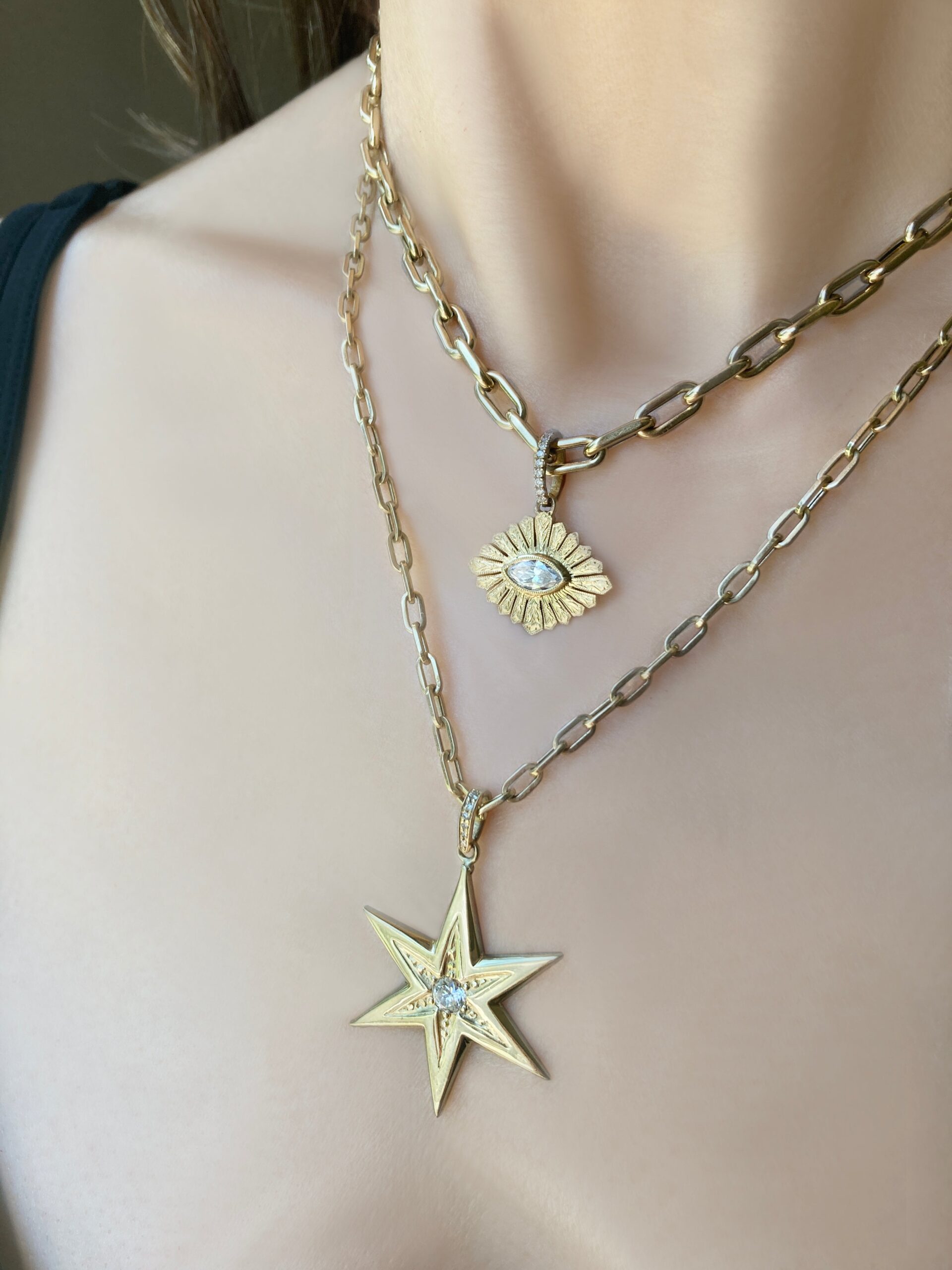 "Superstar! That's what you are." Our Sia Star. with its brilliant diamond center and pave diamond bale. is a brand new favorite and looks just perfect on our Baby Media Link.